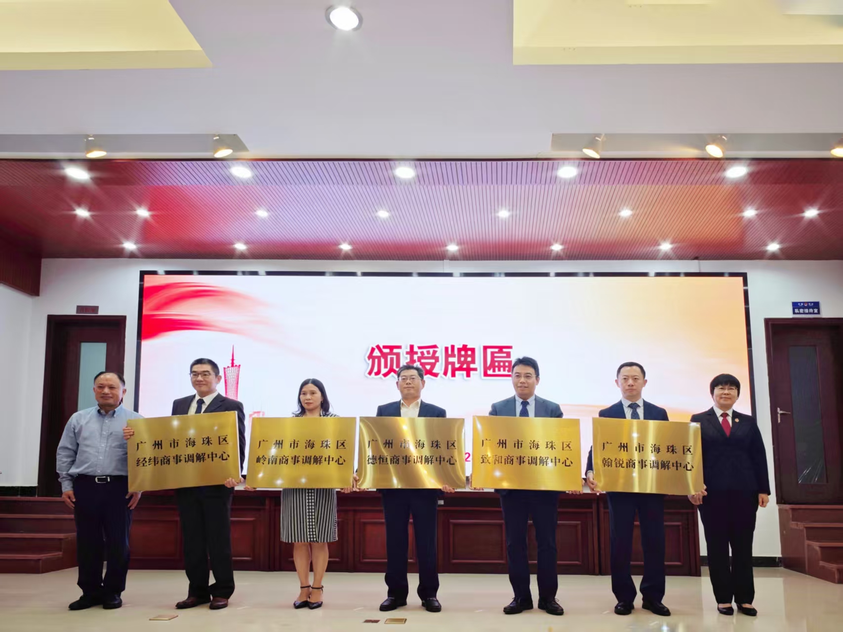 为深入贯彻落实习近平法治思想,进一步完善多元解纷机制,夯实诉源治理工作基础,助力打造市场化、法治化、国际化一流营商环境,2025 年10月28日,由广州市司法局、海珠区人民法院、海珠区司法局联合主办的海珠区商事诉调对接服务中心成立仪式隆重举行。广州市司法局党委委员、副局长左彪,海珠区人民法院党组书记、院长穆健,海珠区司法局二级调研员杨崇斌,海珠区民政局副局长黄晓葵等领导出席仪式,共同为服务中心揭牌,并为入选的商事调解组织、特邀调解员颁发相关资质证书,标志着海珠区在构建 “预防为主、调解优先、诉调衔接” 的商事纠纷解决体系上迈出关键一步,对优化区域营商环境、维护市场经济秩序具有重要意义。