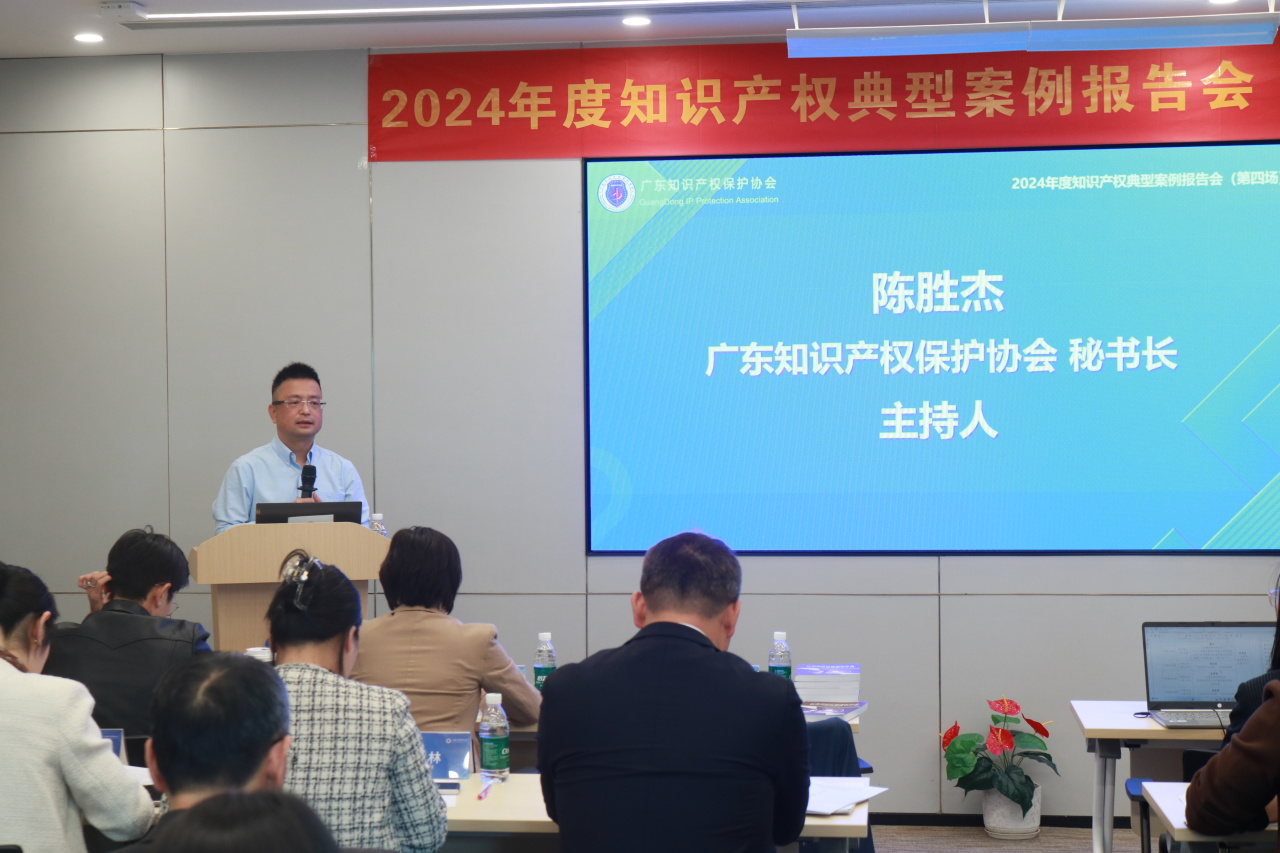 广东知识产权保护协会秘书长陈胜杰作开场主持,他首先感谢敦和律师事务所为案例报告会提供场地支持,随后向与会代表介绍了协会典型案例报告会的发展历程以及今年的案件总体情况,并期待各位参会代表能够借今天这个机会学习优秀案例经验,进一步提升知识产权专业能力。