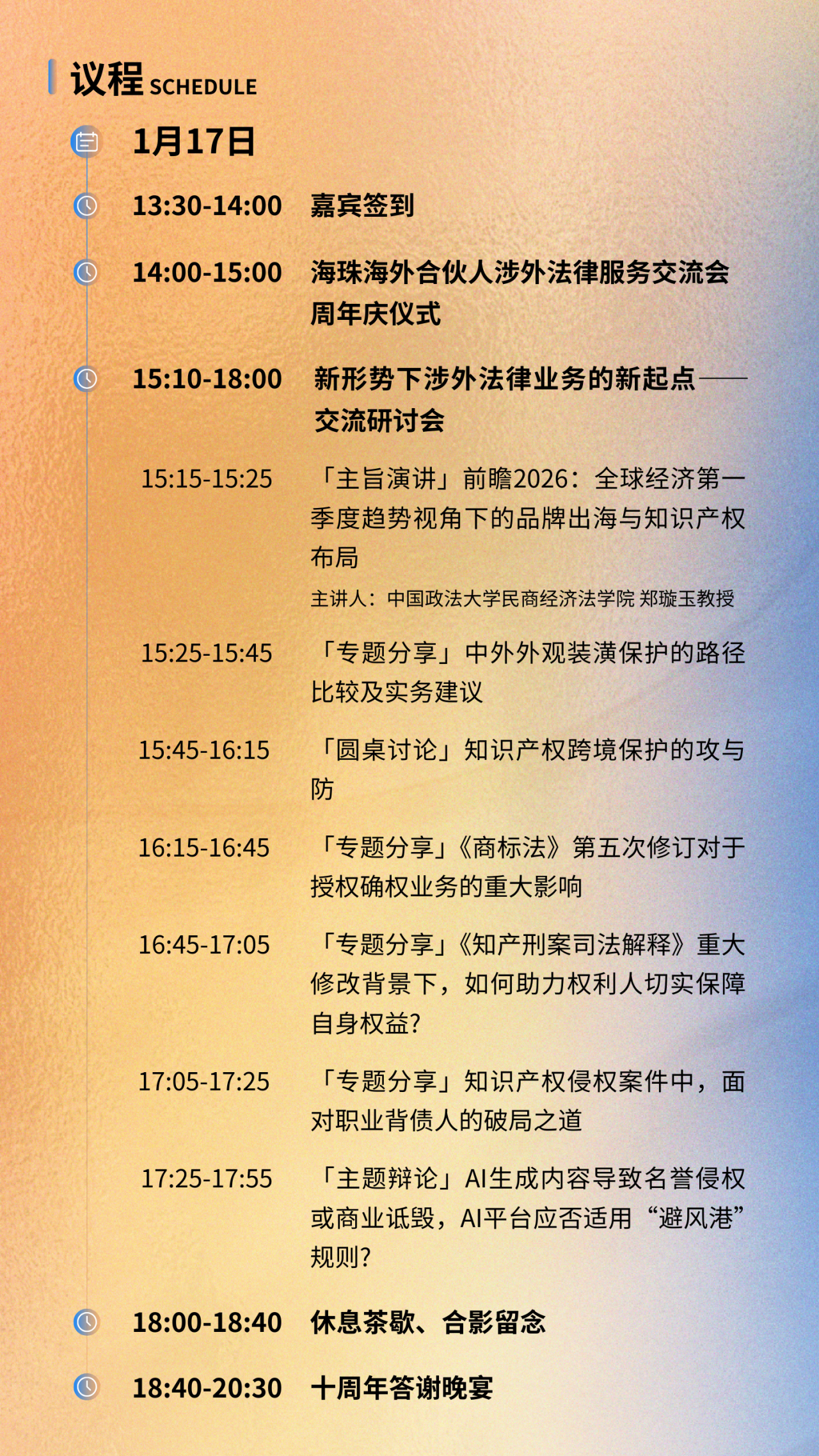 我们特别邀请中国政法大学民商经济法学院郑璇玉教授作主旨演讲,围绕“前瞻2026:全球经济第一季度趋势视角下的品牌出海与知识产权布局 ”主题,从趋势洞察到实务策略,为企业在复杂经济环境中的品牌与知识产权管理提供前瞻思路。