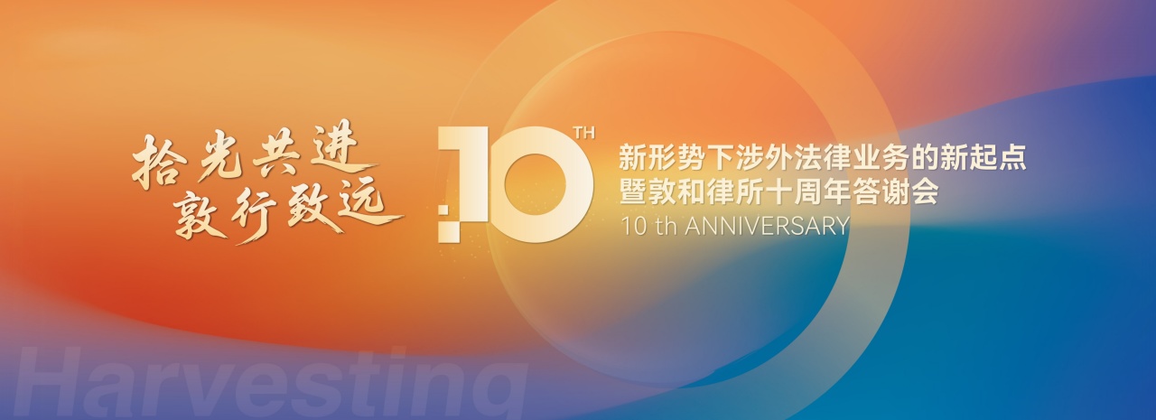 广东敦和律师事务所自创立以来,已走过十个春秋。值此十周年之际,我们诚挚举办 “新形势下涉外法律业务的新起点暨敦和律所十周年答谢会”,诚邀各位朋友、合作伙伴与关注涉外法律发展的同仁共聚羊城,回顾历程,共话新章。